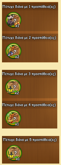 3 Πρόοδοι με 6 βήματα. Μπορείτε να διαλέξετε και να ολοκληρώσετε μόνο μία πρόοδο. Προσβάσιμη μετά τις 03/12 15:00